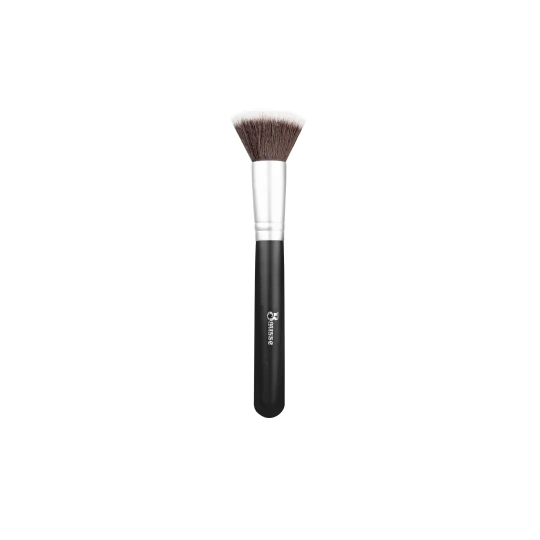 Brocha profesional para aplicar base líquida, logrando un acabado uniforme, natural y sin marcas.