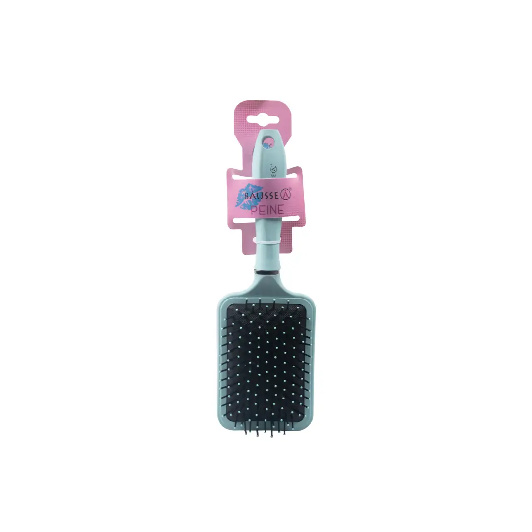 Cepillo desenredador cuadrado, disponible en azul y rosa, ideal para desenredar el cabello suavemente sin dañarlo.11261 M1706-M1709